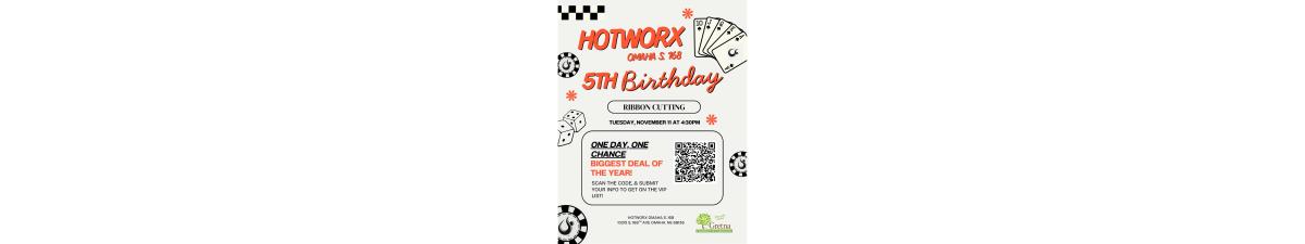 Help us celebrate a milestone that's five years in the making! Join the Gretna Chamber as we cut the ribbon and say Happy 5th Birthday to HOTWORX! Stop by and celebrate a business that been bringing the heat to our community since day one!