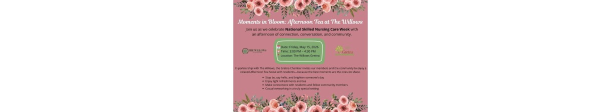 In partnership with The Willows, the Gretna Chamber invites our members and the community to enjoy a relaxed Afternoon Tea Social with residents—because the best moments are the ones we share. 💐